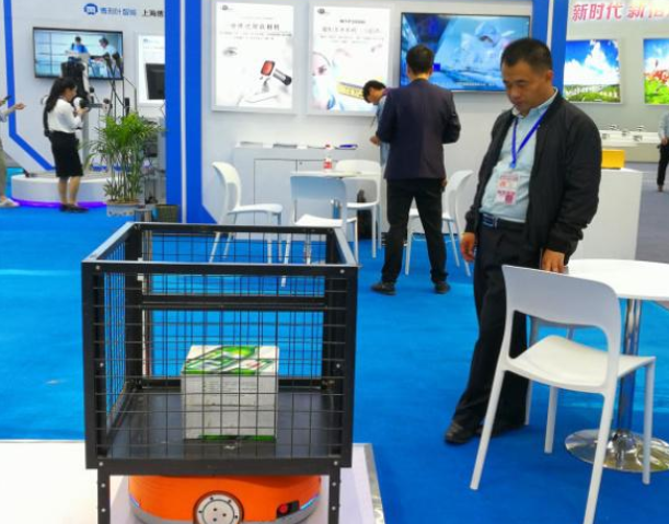 在第四届丝博会西安曲江国际会展中心B馆2号产业馆上海展区,上海快仓智能科技有限公司展位前,一个橘黄色的方形“机器人”载着一个货筐缓慢穿梭,这是“快仓”·新研制的“智能四向穿梭机器人”,这是一个集四个方向行驶、原地换轨道、智能搬运、智能监控、调度动态管理于一体的智能立体存储系统解决方案,通过路径优化和调度算法技术,实现货物的快速进库、出库。
