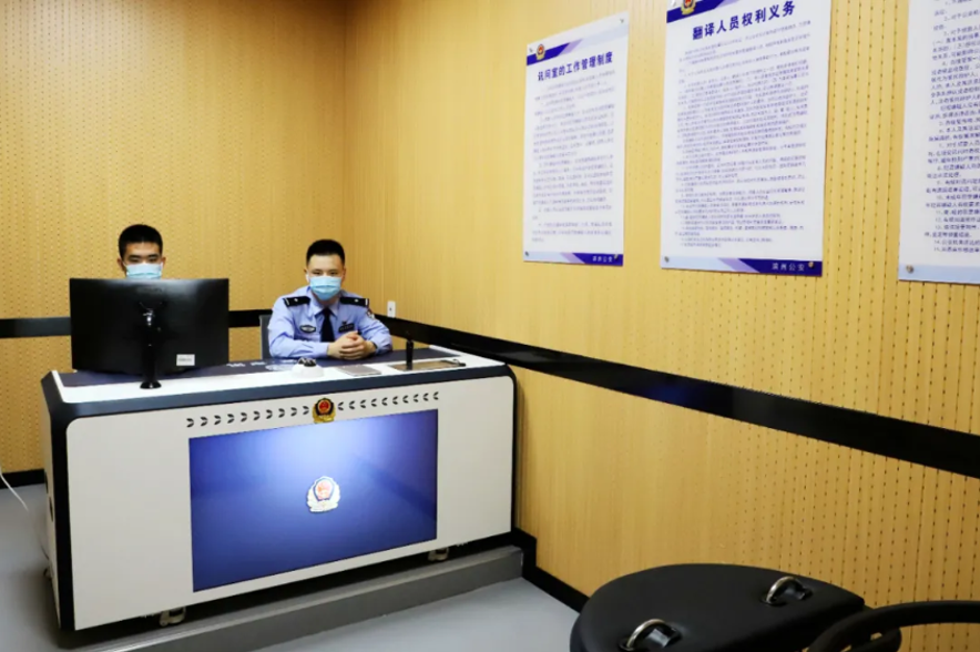 高效的执法办案工作少不了科技装备的支撑,中心内设置了审讯一体机,不仅支持语音播放权利义务、电子笔录制作、嫌疑人通过平板电脑核对笔录、电子签名捺印等功能,还可以实现远程指挥审讯和同案协同审讯。