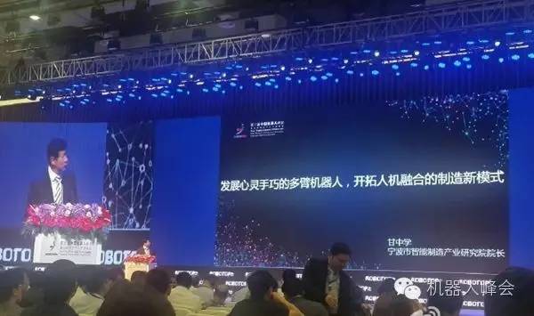 甘中学,国家千人计划联谊会副会长、宁波智能制造产业研究院院长;峰会主旨报告《发展“心灵手巧”的多臂机器人,探索“人机融合”的智能制造模式》。