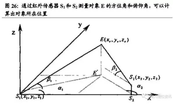 12、超宽红外定位技术:成本高,用于军事、高级别安防红外定位主要有两种具体实现方法,一种是将定位对象附上一个会发射红外线的电子标签,通过室内安放的多个红外传感器测量信号源的距离或角度,从而计算出对象所在的位臵。