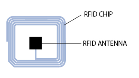 一个RFID标签是由一个连接天线的芯片通过附着在签条上制成的。此标签可被抓取和转换信息的设备读取。