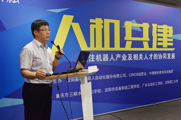 在论坛上,中国机械工业联合会副主任、中国机器人产业联盟副秘书长陈家良先生首先发表了热情洋溢的致辞,随后来自新松机器人工业机器人事业部的鲍君善副总工程师以及来自中德新松教育集团的郑英健董事长助理分别进行了题为《撬动机器人教育的支点------新松机器人教育行业解决方案》和《聚焦巨量人才缺口,抓住历史性职教发展机遇》的精彩报告。报告后,在现场领导、嘉宾和参会代表的见证下,新松机器人与沈阳理工大学等四所教育机构的代表签订了合作协议,沈阳理工大学教务处处长陈亮也代表各教育机构做了现场发言。最后新松机器人工业机器人事业部总经理王金涛等六位专家上台现场回答了参加论坛的各位嘉宾和代表就机器人产业的发展以及机器人相关人才的培养提出的相关问题。