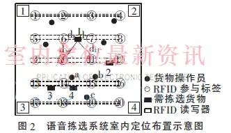该语音拣选系统语音识别模块采用ICRoute公司设计生产的V280语音识别标准模块,该模块能够独立完成语音识别,并根据用户设计实现相应的操作;模块基于本地的语音识别,识别命令相对于“云端”语音识别,其具有没有延迟、不受网络稳定性影响等优点;模块以LD3321芯片作为语音识别的主控芯片,此芯片是基于关键词语的识别,采用成熟的非特定人语音识别芯片技术,能够有效地实现语音识别,并且能够支持语音播放功能;同时,模块具有丰富的外设接口,方便进行控制。为实现操作人员的有效调度,提高拣选效率,系统采用先进的室内定位算法,并依据系统的特殊性进行算法改进,下面详细介绍定位算法的实现。