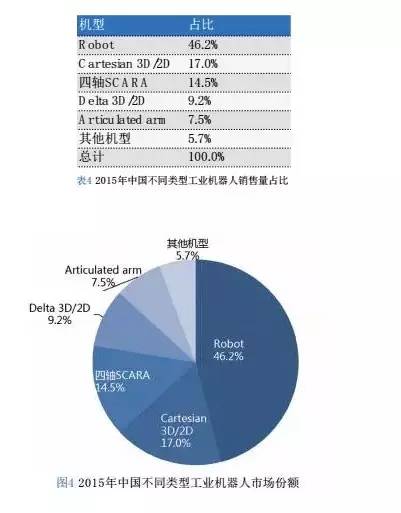 从机型来看,2015年中国所销售的工业机器人中,以Robot和Carte