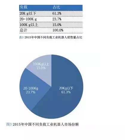 从负载来看,2015年中国所销售的工业机器人中,以小型负载工业机器人为主,中型负载和大型负载工业机器人相对较少。