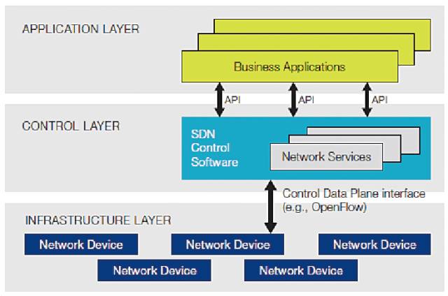 在SDN中,运用被称之为表达状态转移(Representation State Transfer)的互联网技术RESTFUL API,作为支持系统和应用之间标准接口的架构。这样便可允许控制设备的供应商独立的编写应用程序而又能在SDN中协调的运行。控制工程师则可以运用这个软件来定义其控制应用(甚至把也包括定义网络通信的端口)。