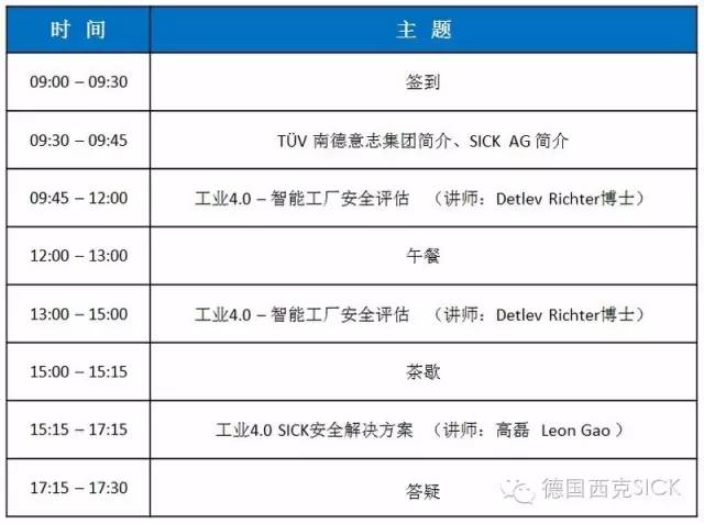 主办方:西克 SICK(中国) 技术服务部