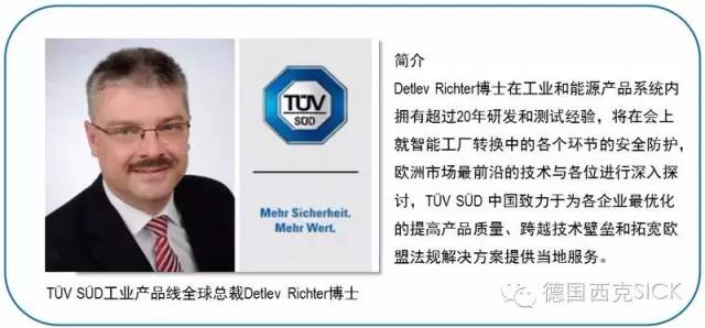 SICK AG携手TÜV南德意志集团,于2016年10月28日(周五)在深圳华侨城洲际大酒店联合举办“聚焦智能制造 – 工业4.0中的智能工厂机器安全”研讨会。
