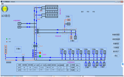 加工车间有12条加工线,AGV从立体库送来毛坯,再把加工车间产出的半成品,输送至成品1生产车间的缓存库中。AGV从加工车间将半成品送至成品1生产车间生产,产出成品1,AGV再把产线上下来的成品1送入混合立体库中。AGV从混合立体库中运输毛坯到成品2车间,通过生产加工产出成品2,AGV再把产线上下来的成品2送入混合立体库中。车间与立体库的完美配合,依赖于AGV强大的大脑——AGVS,他指挥着AGV什么时间去哪里,运送什么, 因而毛坯、半成品和成品的实物流才能及时准确地流通。