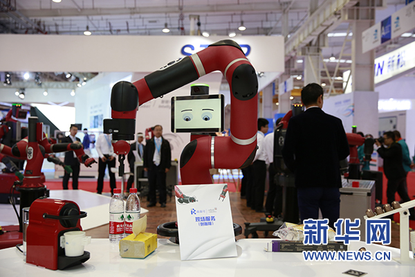 展区内,一款智能协作机器人在展示冲泡咖啡服务。(新华网 鲁聃玉文摄)