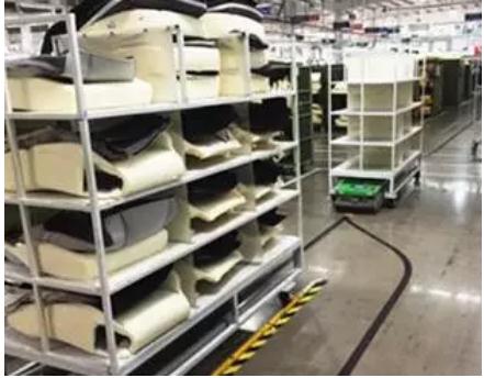 目前,座椅武汉工厂的佳顺AGV小车主要工作在整椅生产线,代替原来的小火车和人工拖运形式,进行座椅生产物料的运输。它的加入,作为工厂积极推行数字化企业项目的一大成果,大大改善了工厂的物料运输情况。