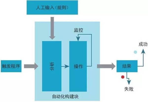 启动所需操作的触发器:该触发器可以是一次人工干预、一个超过阈值之类的简单事件、多个事件分析引起的一个复杂事件或者一个日期/时间之类的日历事件。此外,也可以是其他操作的输入。例如,物联网(IoT)设备可以通过分析传感器和基于位置的技术提供的个人身份、状态和位置等输入来识别触发器;