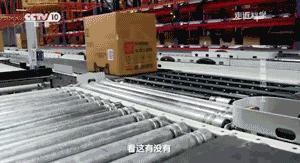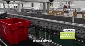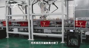 流水线两边很多播种机器人,通过真空吸盘,把周转箱内的商品吸到快递包装箱里,快递箱通过流水线,会自己走向打包区域,贴上面单后就可以发货了。