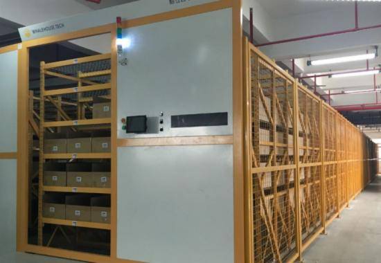 鲸仓用四年研发出了一套“密集自动货架”,原理是驱动货品向拣选面流转,当订单命中的货品到达拣选口,系统会自动识别,此时设备会自动停止运转并亮黄灯提示,拣货员看到有黄灯亮的货位即可过去拣货。这类似于回转式货架,不过选择了矩形回转而非圆形回转,支持边进边出,更适合多SKU、海量订单并发的电商仓场景。