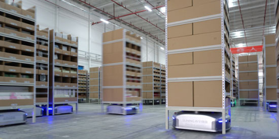 这套智能拣选系统的投入使用,将使仓库的使用和搬迁变得非常灵活,避免了大规模的库房改造。此外,为了应对双11等节日大促带来的物流压力,苏宁可以根据日均订单能力投资部署,高峰通过增加机器人和工位,实现能力倍增,真正实现柔性拓展能力。