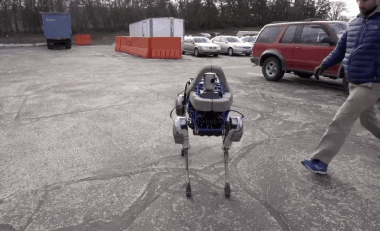 其实波士顿动力之前的机器人演示视频也都挺让人印象深刻的,我关注到他们大概还是从那个踹不倒的机器狗动图开始的: