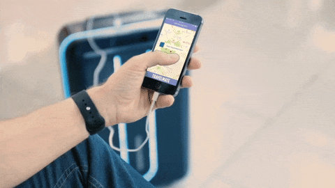 ravelmate手提箱具有方便的方向指示器,可以随时向您显示准确的位置。类似于汽车中的转向信号。而且还有一个扬声器的功能,可以提醒你前方障碍物或者手提箱的位置,为低头一族的提供安全保障。这样的提醒可以在Travelmate应用程序打中自行选择打开或者关闭。