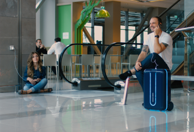 ravelmate行李箱还是一个特别有爱心的功能,那就是那可以用手机移动端来指挥,它的行迹方向,这就意味着,你碰见以恶搞心动妹子,你就可以先让ravelmate假装莫名的撞到对方,或者假装不经意把他的行李给推走。这样你是不是就有了搭讪的机会。