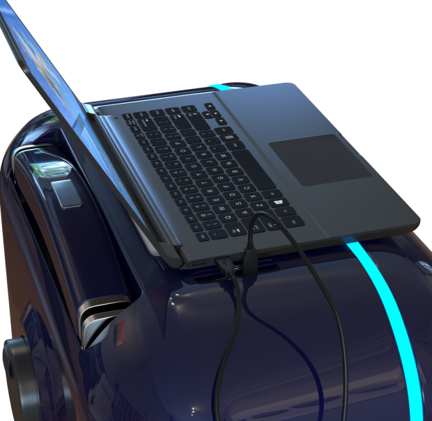 更神奇的可以帮助那些喜爱制作VR准备好的视频博客的小伙伴,在Travelmate手提箱中有个内置的支架,可以将相机或虚拟现实摄像头连接到手提箱,可以Travelmate作为相机操作员。