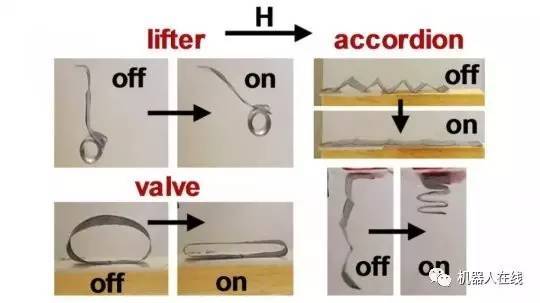 使用这种技术,研究人员创造了三种软机器人。一个装置是悬臂,可以提起自身重量50倍的物体。第二种装置是一种手风琴式的结构,可扩展和收缩,模仿肌肉的行为。第三个装置是设计成作为蠕动泵的管子 - 压缩部分沿着管的长度行进,就像有人通过沿着管子移动手指挤出最后一点牙膏一样。