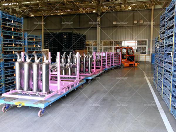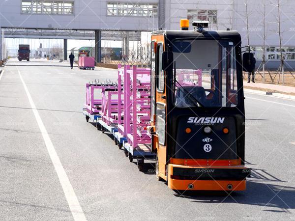 作为与风神物流战略合作的成功案例,新松公司根据客户实际需求,将客户现有的4吨国产电动牵引式旧车加以改造。升级后的无人驾驶拖车采用惯性导航方式,可完成从in-site车间到总装车间的物料输送,奔波于各个车间不同路段,无人驾驶车的运行状态具备可视化,满足生产节拍。