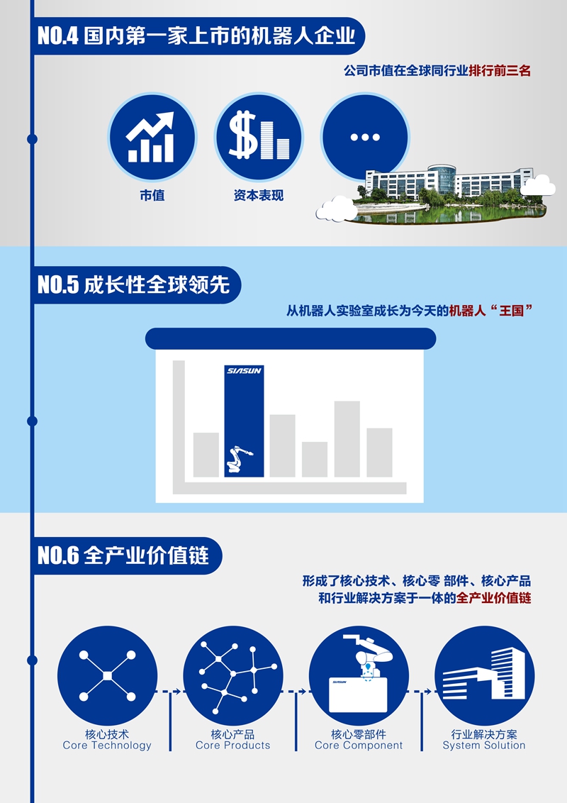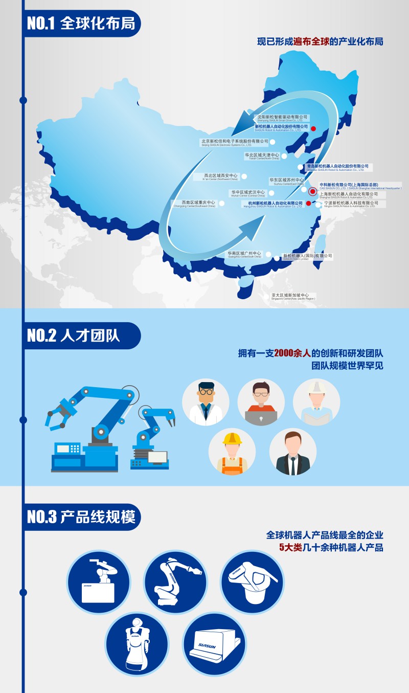 新松机器人自动化股份有限公司(以下简称“新松”)成立于2000年,隶属中国科学院,是一家以机器人技术为核心的高科技上市公司。作为中国机器人领军企业及国家机器人产业化基地,新松拥有完整的机器人产品线及工业4.0整体解决方案。以创新、开放和共赢的思维引领行业进步,以领先的产品和服务为全球客户持续创造价值。新松本部位于沈阳,在上海设有国际总部,在沈阳、上海、杭州、青岛、天津、无锡建有产业园区。同时,新松积极布局国际市场,在韩国、新加坡、泰国、香港等地设立多家控股子公司,现拥有4000余人的研发创新团队,形成以自主核心技术、核心零部件、核心产品及行业系统解决方案为一体的全产业价值链。