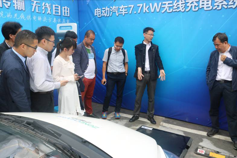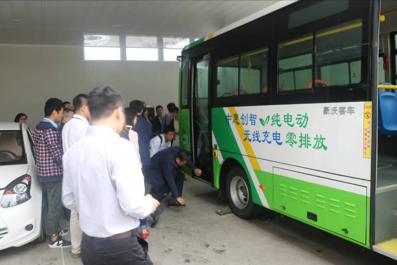 参会代表参观中惠创智22KW公交车无线充电系统