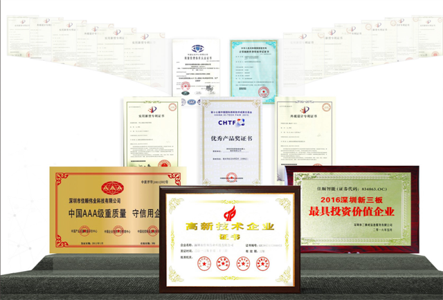 各类资质荣誉——目前已经荣获“国家级高新技术企业”、 “广东省名优产品企业”、“深圳市政府重点扶持企业”、欧盟地区“CE认证”、“广东省机器人协会副理事长单位”、“武器装备质量管理体系认证”等多项资质。