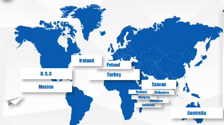 佳顺产品远销日本、新加坡、澳洲、土耳其、印度、马来西亚等世界各地,并建立起自己的分支营销服务机构及代理商渠道,深受丰田、本田、大发、雅马哈、爱普生、索尼、安特等海外知名客户青睐。