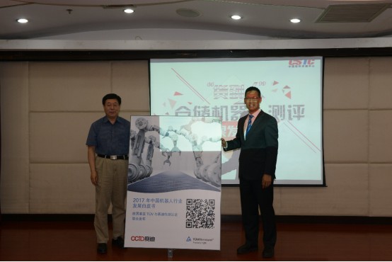 会议最后,中国评测与德国莱茵TÜV集团联合举行了《2017年中国机器人产业发展白皮书》的发布仪式。
