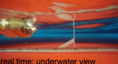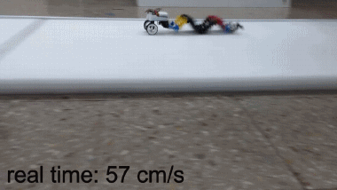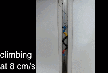 2016年的时候,在一个仿生相关的期刊上,研究者们发表了这个独特的机器人设计点子。这个小家伙只需要一个电机就可以完成它的波浪式扭动,并且前进速度还相当快。一个较大的波浪机器人(如下图)可以达到57厘米/秒的移动速度,鉴于它如此简单的设计,这成绩相当不错了。