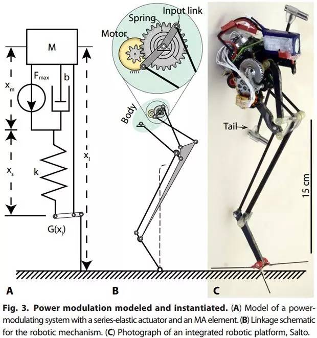 在跳跃的过程中,Salto-1P有 92% 的时间将处于空中。而为了实现连续跳跃,机器人会在半空中使用“尾巴”和两个小螺旋桨控制姿态,迎接下一次落地弹跳。