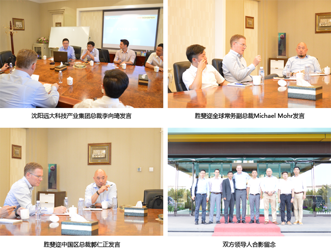 2017年7月4日,胜斐迩自动化全球常务副总裁Michael Mohr以及中国区总裁郭仁正莅临我公司进行实地参观考察。沈阳远大科技产业集团总裁李向琦以及工业工程事业部总经理张莹等人进行全程陪同。