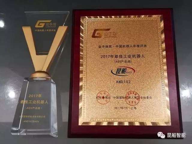 7月5日,由中国机械工业联合会指导,机电商报社联合中国国际机器人展览会组委会、上海中机联展览有限公司共同发起的“金手指奖·2017中国机器人年度评选颁奖典礼”在上海举行。在这次评选中,昆船公司AND102型AGV获评“2017年最佳工业机器人”。