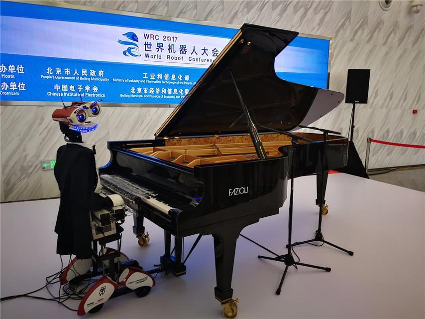 图为弹钢琴机器人特奥特劳尼克