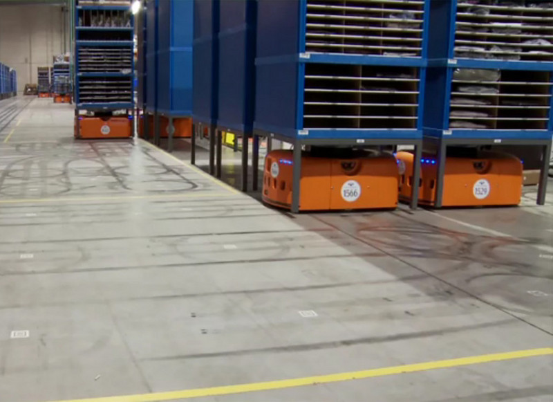 正是因为这套系统有着很好的协调性,所以我们的仓库可以做到很大的规模,比如一个系统可以管理面积达3万平米的仓库,可以同时满足3000台物流机器人的移动操作。加上KID机器人的行进速度很快,还能做到自定行动策略(遇到障碍物时能自动反应并与其他机器人进行智能交互),所以整体的物流效率就变得很高。