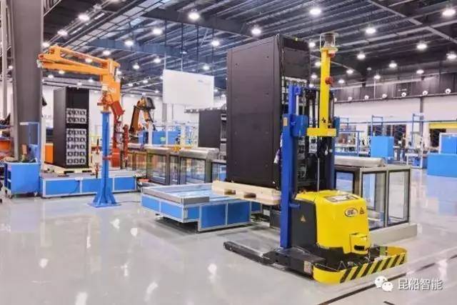 “在这座工厂,从仓库到产线、从产线到产线之间,再到下线进入老化室、成品库,不同生产单元之间,所有的物料运输都由 AGV、RGV 和激光叉车完成。” 署名申耀的作者在《【揭秘】中国首家信息化高端装备智能工厂》一文中所说的工厂是位于山东济南孙村产业园的浪潮信息化高端装备智能工厂。文章中提到的AGV和激光叉车,正是由昆船智能公司为其实施的AGV系统。