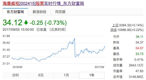 今天,9月6日海康威视的市值已经涨到3148亿元!