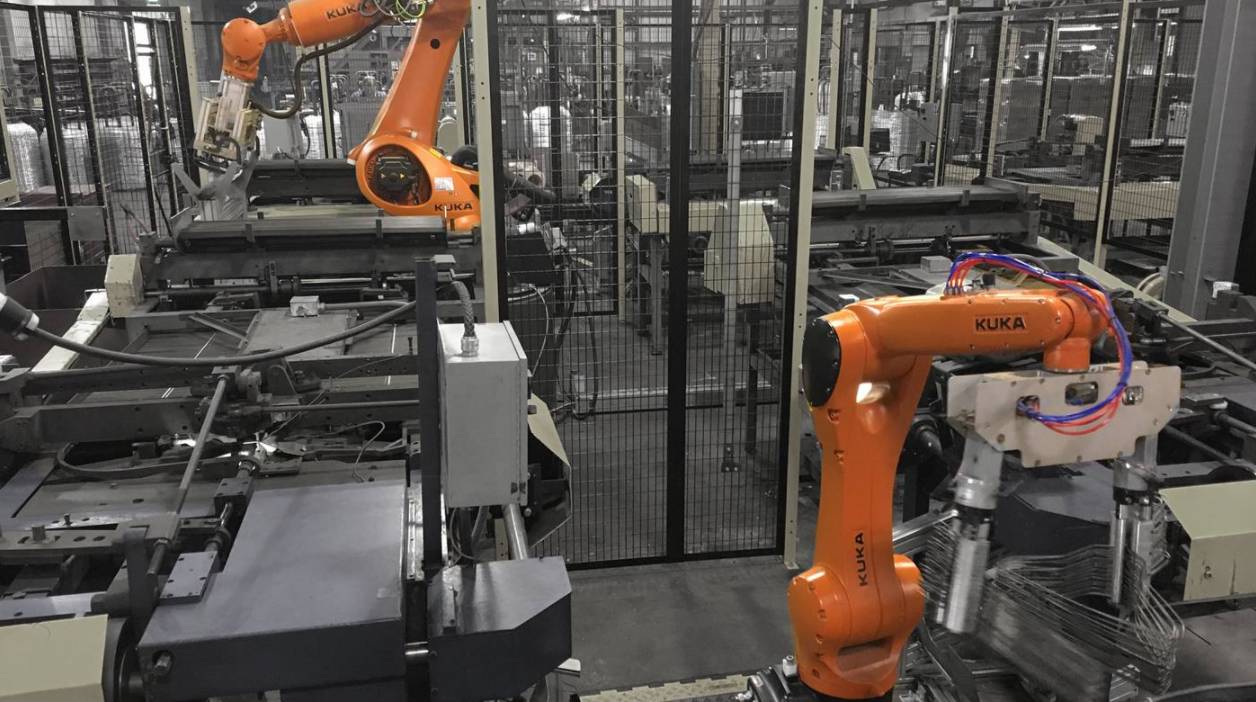 将机器人自动化技术植入一家 74 年制衣架厂陈旧的生产工艺,对于自动化专家 Fitz-Thors 工程公司来讲,是一个独特的挑战。最终他们成功将 7 个 KUKA 机器人无缝地和制衣架厂老式的钢丝衣架成型机整合起来。机器人伙伴的加入,为老厂的生产带来了令人惊叹的速度和精度。