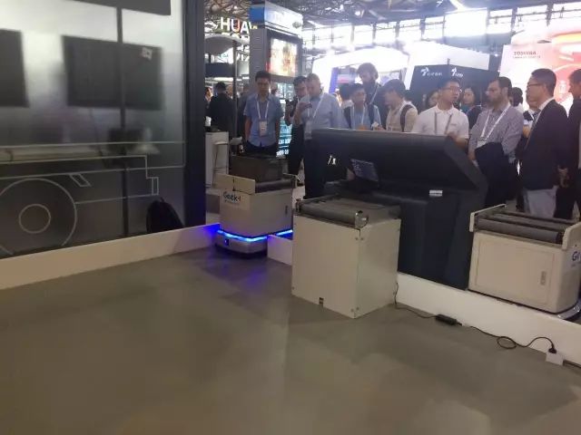 值得一提的是,此次Geek+所演示的是多机器人配合柔性搬运,并实现辊道对接,无论从技术难度和运行稳定性方面都是一个非常大的提升,说明M100机器人运行系统已经日臻成熟,机器人本体的稳定性也达到了很高的程度。现场演示也受到了行业内外人士的极大关注。