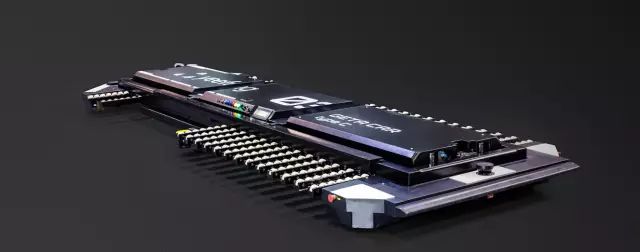 全球首台“激光导引+梳齿交换式AGV机器人”,定位精度小于5mm,载车重量2.5吨,行驶速度1.5m/s,存取车一次的时间小于2分钟,100台AGV可同时调度,可实现车位数增加40%以上。