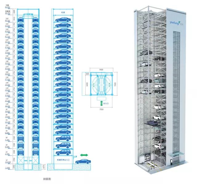 占地少,车容量大;采用与电梯类似的原理与结构,一个标准塔库平均一个车位仅占1平方米。可满足地上或地下从2到29层车库的使用要求。