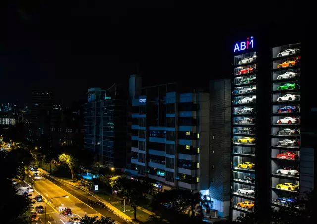 新加坡ABM立体停车塔内藏于主体大楼之中,用于停放各类待售及租赁的豪车。可停放各类跑车,停车重量可达2.8吨。