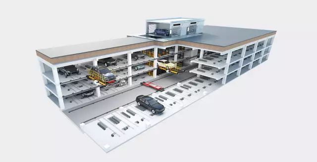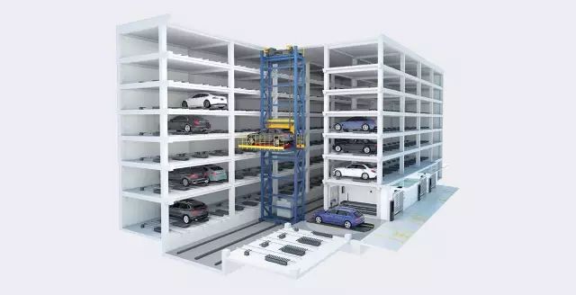 车库占地少、容量大。每套系统有一台堆垛机,可以在轨道上水平移动,同时堆垛机上含升降平台。可满足地上或地下从2到7层车库的使用要求。