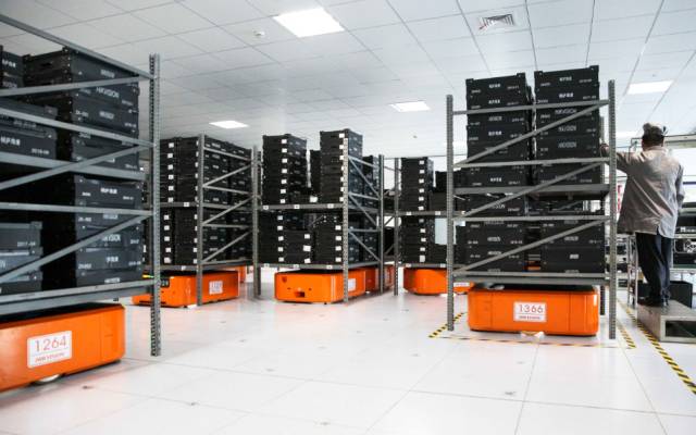 该系统在海康威视桐庐生产基地应用以来,能够满足基地日产值亿元的仓储及内物流需求。与传统人工库操作相比,使用海康威视智能仓储机器人系统,成品库节约人力约58%,工作效率提升84%,在节约生产成本的同时,大大地提高了生产效率。