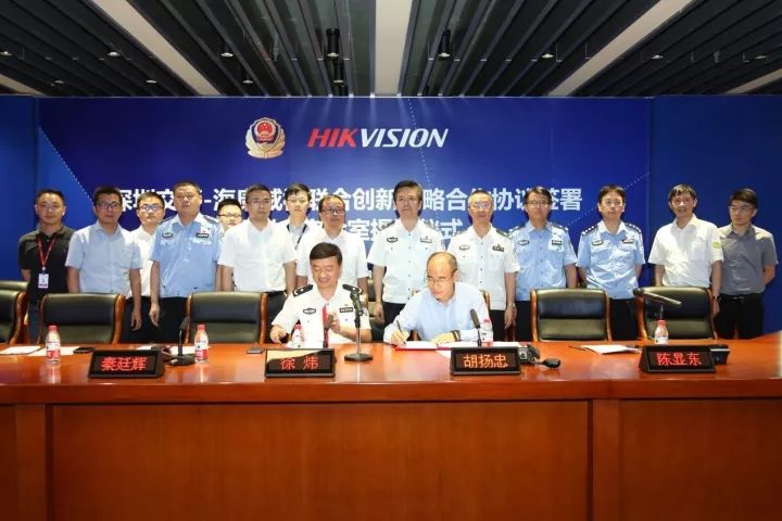 10月10日下午,深圳市公安局交通警察局与海康威视在深圳签署了战略合作协议,并共同为“深圳交警—海康威视联合实验室”揭牌。深圳交警徐炜局长、陈显东副局长、冯新毅副局长、王亚飞处长和李强处长等领导,以及海康威视总裁胡扬忠、交通事业部总经理徐志军、深圳分公司总经理顾城成共同参与仪式,中电科新型智慧城市研究院有限公司副总经理秦廷辉共同见证了此次双方的合作盛事。
