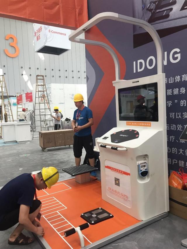 深圳泰山体育科技股份有限公司作为商会的会员企业首次参展,带来了“爱动吧”整体方案。公司总监杨胜强告诉记者, 这其实是传统模式的健身房互联网升级版,其中包含了体质检测一体机、教学机,以及一系列健身设备,再加上互联网+大数据进行后台数据分析,让健身真正做到智能化。