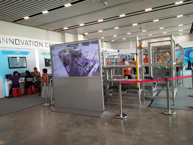 在1号展馆的佛山华数机器人展台,一条展现“中国制造2025”生产示范线正在加紧安装调试。这条示范线通过先进的输送线体和成熟稳定的红外感应及气动技术,结合国产机器人自动化、AGV、条码识别等应用,打造出先进的小家电机器人自动装配线。