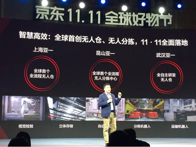 目前,京东已实现了仓储、分拣、运输、配送、客服全供应链环节的无人化,大促期间,这些无人科技的应用将越来越广泛和深入。