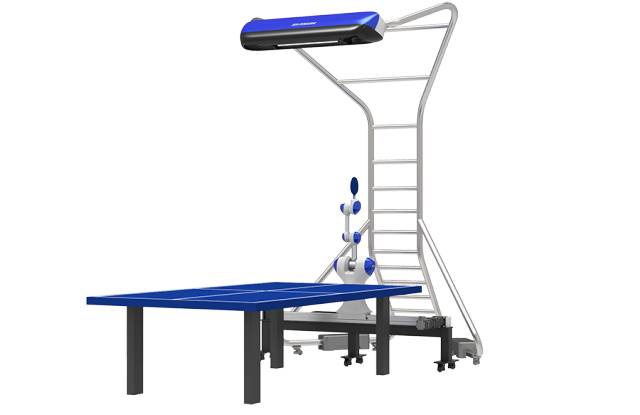 新松乒乓球机器人是一款采用高速分布式双目立体视觉系统,进行高速运动乒乓球识别、预测、回球的具有自主知识产权的6自由度机器人。通过自主研发的高速乒乓球识别算法,可在4毫秒内、复杂变化背景下快速有效识别乒乓球,识别率可达99.9%。同时,机器人采用智能回球策略,可在线学习和训练不同选手的击球特点,从而智能调整乒乓球机器人的回球策略。打乒乓球,我们是认真的。
